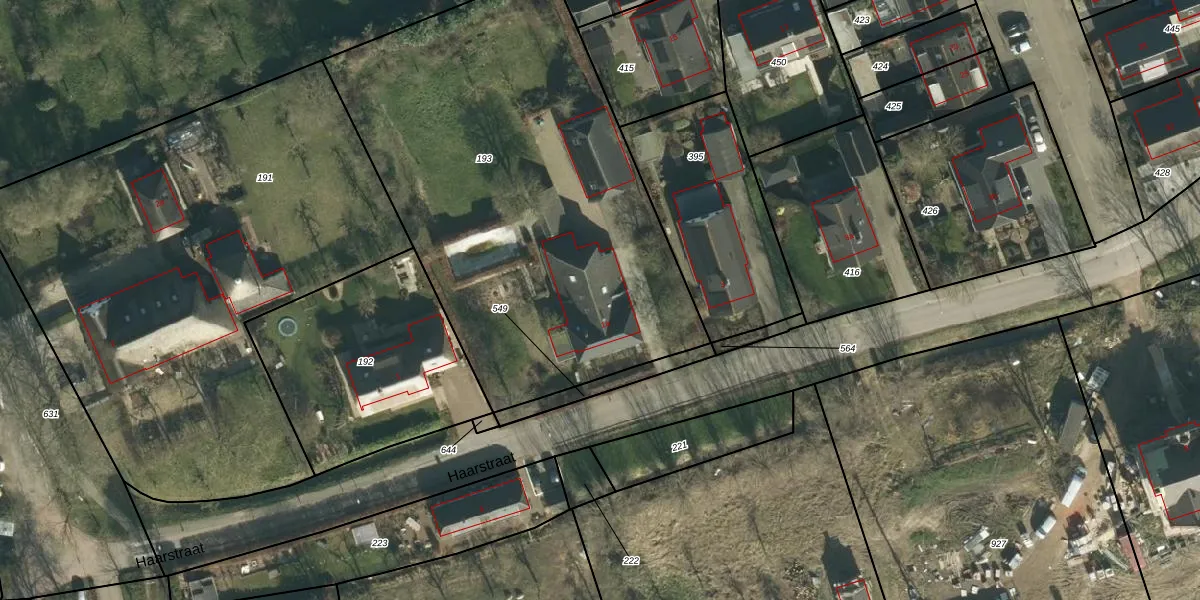 Het perceel waarop Haarstraat 1-a staat heeft een oppervlakte van 2590 m². Dit is een zeer groot perceel. De perceeloppervlakte wordt geregistreerd door het Kadaster. Gedetailleerde informatie over de maten van dit perceel kunt u vinden in het rapport Kadastrale kaart met maatvoering van Haarstraat 1-a.