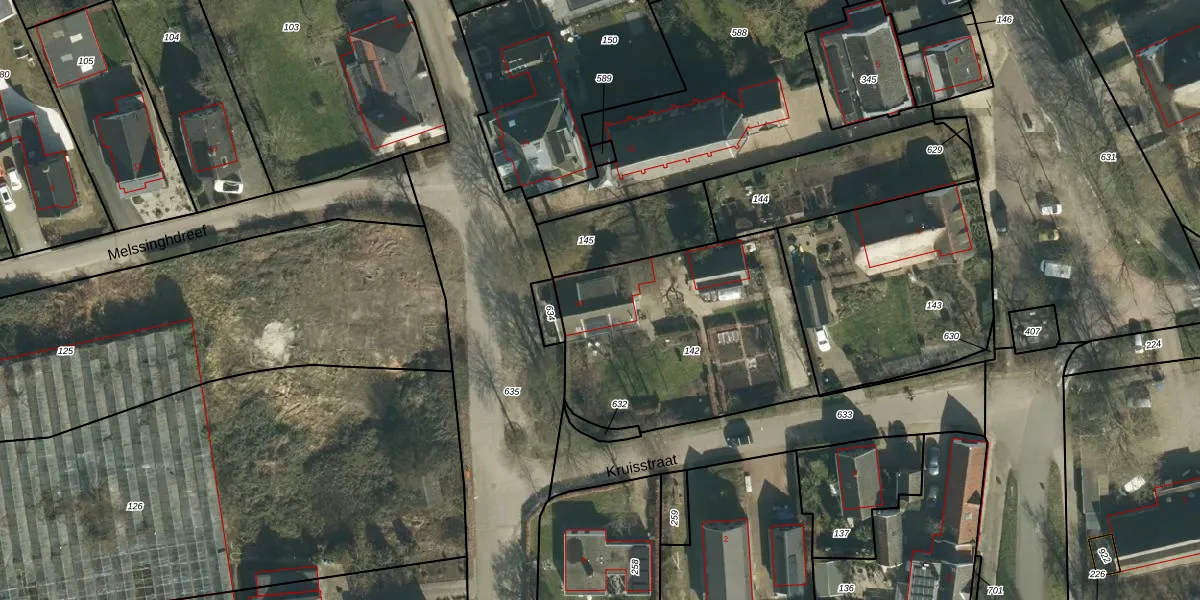 Het adres ligt op het perceel HTN05-M-142, dat zich in de kadastrale gemeente Haaften bevindt. Het perceel is 1090 m² groot. Dat is kleiner dan de gemiddelde perceeloppervlakte in Haaften, dat op 6564,39 m² ligt. De grootste perceeloppervlakte in de kadastrale gemeente is 63,1 ha. De kleinste oppervlakte bedraagt 0 m². Dit is het enige adres dat aanwezig is op het perceel. In de Basisregistratie Kadaster (BRK) werden de grenzen van het perceel geregistreerd op 28-09-2012.