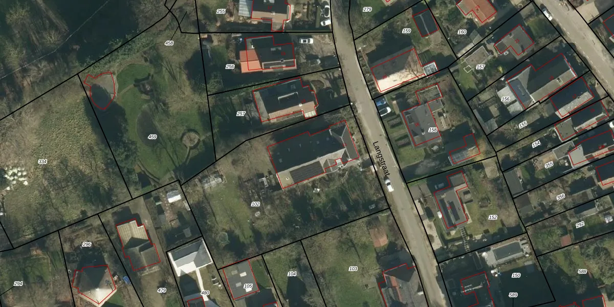 Langstraat 11 is gelegen op kadastraal perceel HTN05M102. Deze kadastrale aanduiding is uniek en wordt gebruikt door het Kadaster om eigendomsrechten en andere zakelijke rechten vast te leggen. Het perceel maakt onderdeel uit van de kadastrale gemeente Haaften.