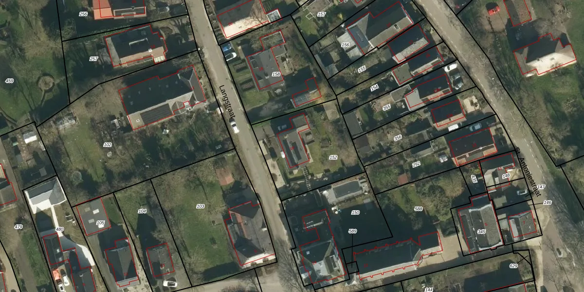 Het perceel waarop Langstraat 16 staat heeft een oppervlakte van 825 m². Dit is een groot perceel. De perceeloppervlakte wordt geregistreerd door het Kadaster. Gedetailleerde informatie over de maten van dit perceel kunt u vinden in het rapport Kadastrale kaart met maatvoering van Langstraat 16.