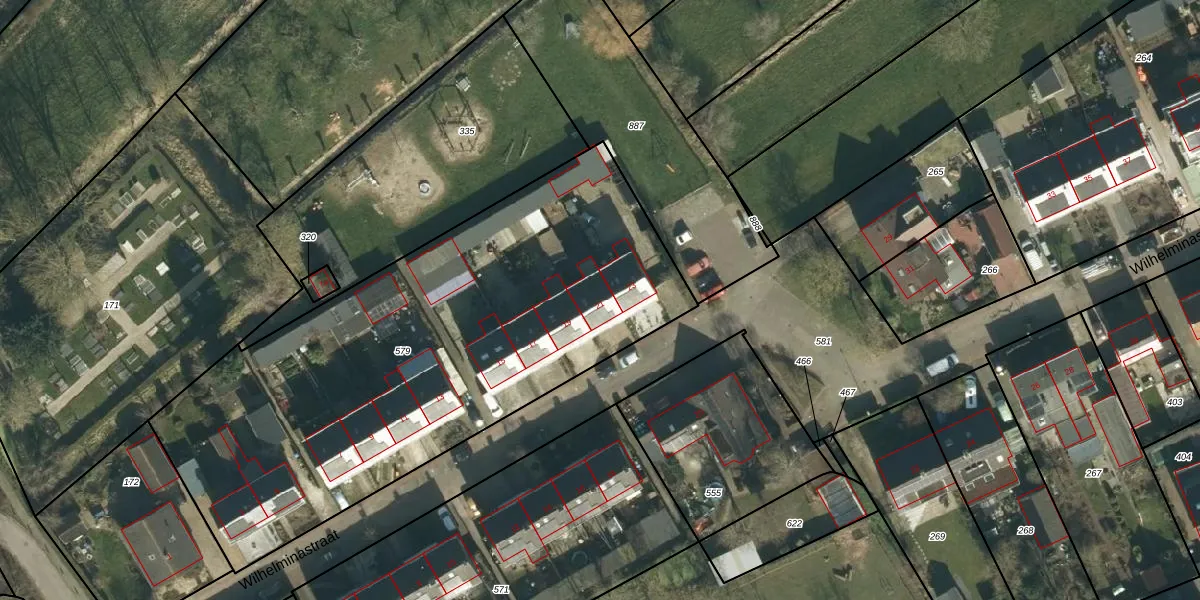 Het perceel waarop Wilhelminastraat 21 staat heeft een oppervlakte van 2773 m². Dit is een zeer groot perceel. De perceeloppervlakte wordt geregistreerd door het Kadaster. Gedetailleerde informatie over de maten van dit perceel kunt u vinden in het rapport Kadastrale kaart met maatvoering van Wilhelminastraat 21.