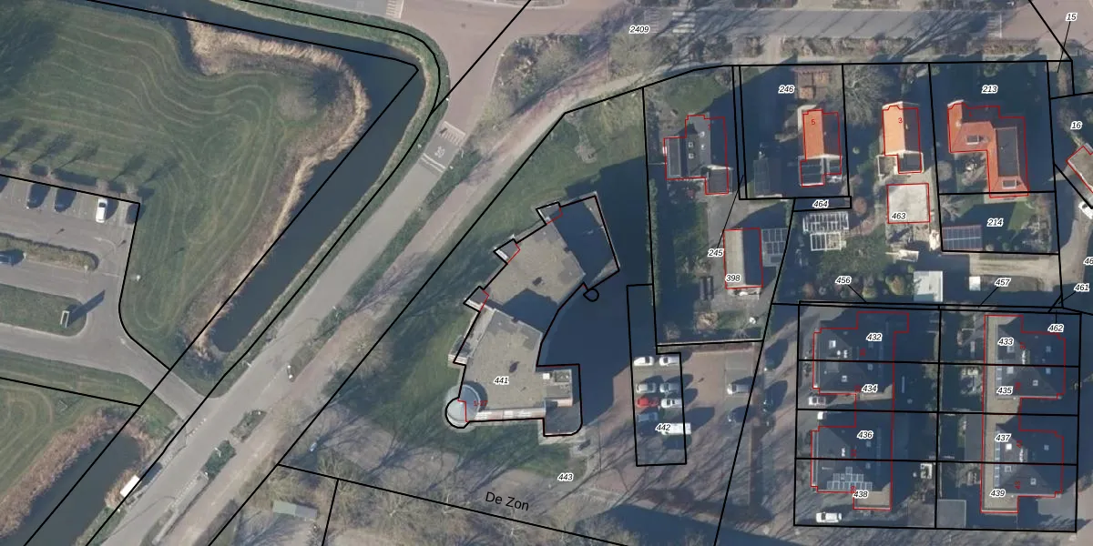 Het perceel waarop De Zon 17 staat heeft een oppervlakte van 735 m². Dit is een groot perceel. De perceeloppervlakte wordt geregistreerd door het Kadaster. Gedetailleerde informatie over de maten van dit perceel kunt u vinden in het rapport Kadastrale kaart met maatvoering van De Zon 17.