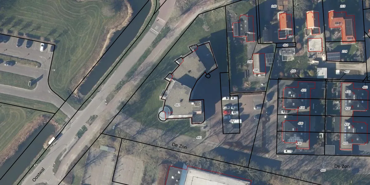 Het perceel waarop De Zon 23 staat heeft een oppervlakte van 735 m². Dit is een groot perceel. De perceeloppervlakte wordt geregistreerd door het Kadaster. Gedetailleerde informatie over de maten van dit perceel kunt u vinden in het rapport Kadastrale kaart met maatvoering van De Zon 23.