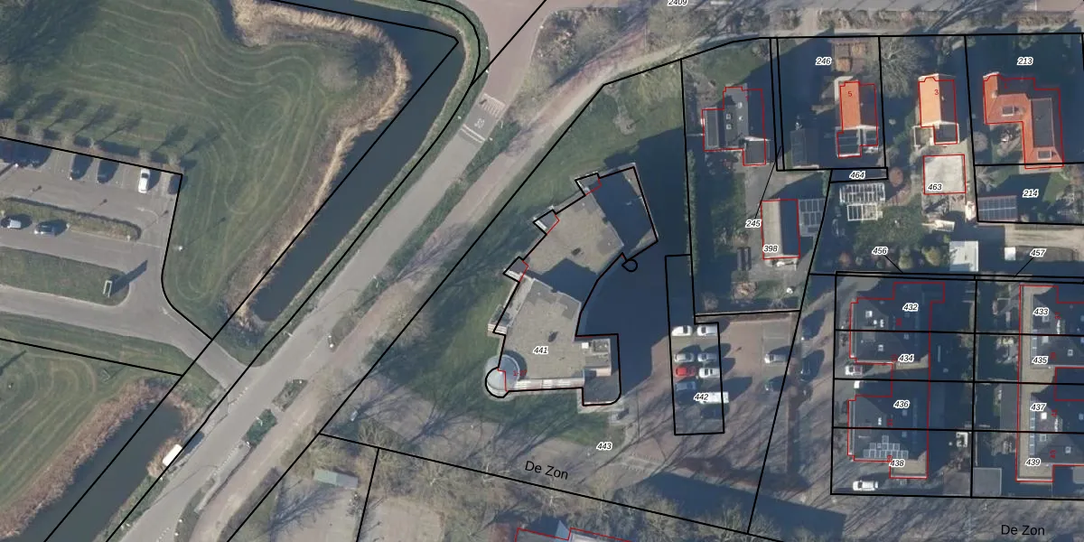 De Zon 5 is gelegen op kadastraal perceel HRK00M441. Deze kadastrale aanduiding is uniek en wordt gebruikt door het Kadaster om eigendomsrechten en andere zakelijke rechten vast te leggen. Het perceel maakt onderdeel uit van de kadastrale gemeente Harenkarspel.