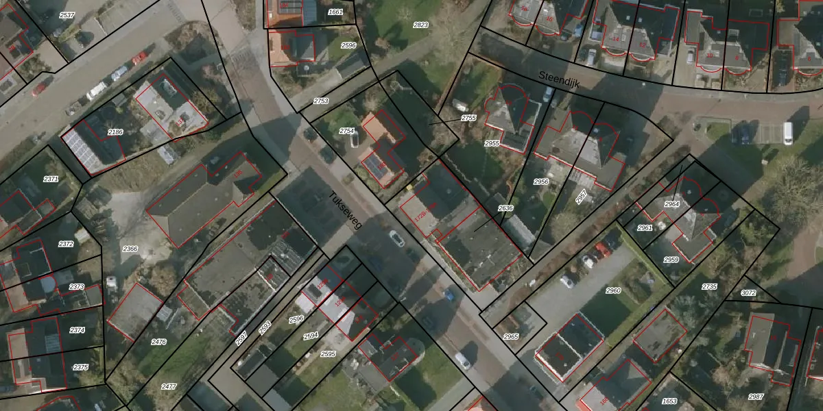 Het perceel waarop Tukseweg 178 staat heeft een oppervlakte van 595 m². Dit is een groot perceel. De perceeloppervlakte wordt geregistreerd door het Kadaster. Gedetailleerde informatie over de maten van dit perceel kunt u vinden in het rapport Kadastrale kaart met maatvoering van Tukseweg 178.