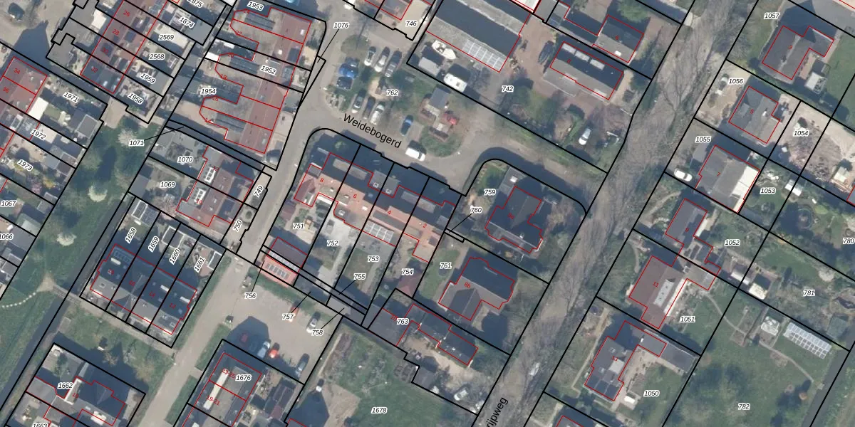 Weidebogerd 2 is gelegen op kadastraal perceel HTN04I754. Deze kadastrale aanduiding is uniek en wordt gebruikt door het Kadaster om eigendomsrechten en andere zakelijke rechten vast te leggen. Het perceel maakt onderdeel uit van de kadastrale gemeente Houten.