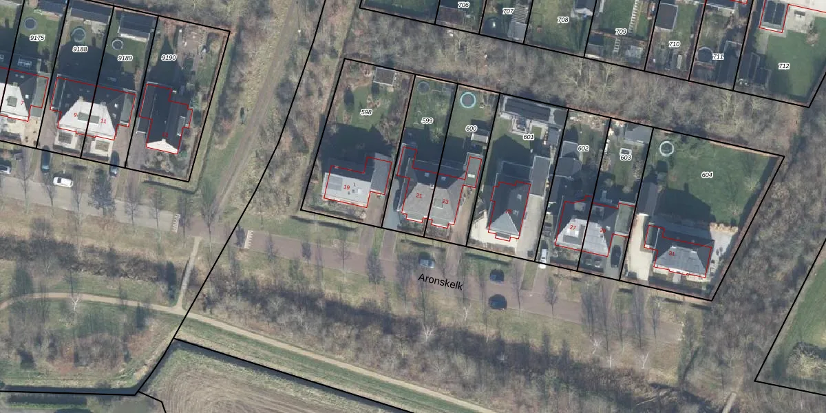 Aronskelk 21 is gelegen op kadastraal perceel VOO00S599. Deze kadastrale aanduiding is uniek en wordt gebruikt door het Kadaster om eigendomsrechten en andere zakelijke rechten vast te leggen. Het perceel maakt onderdeel uit van de kadastrale gemeente Voorst.
