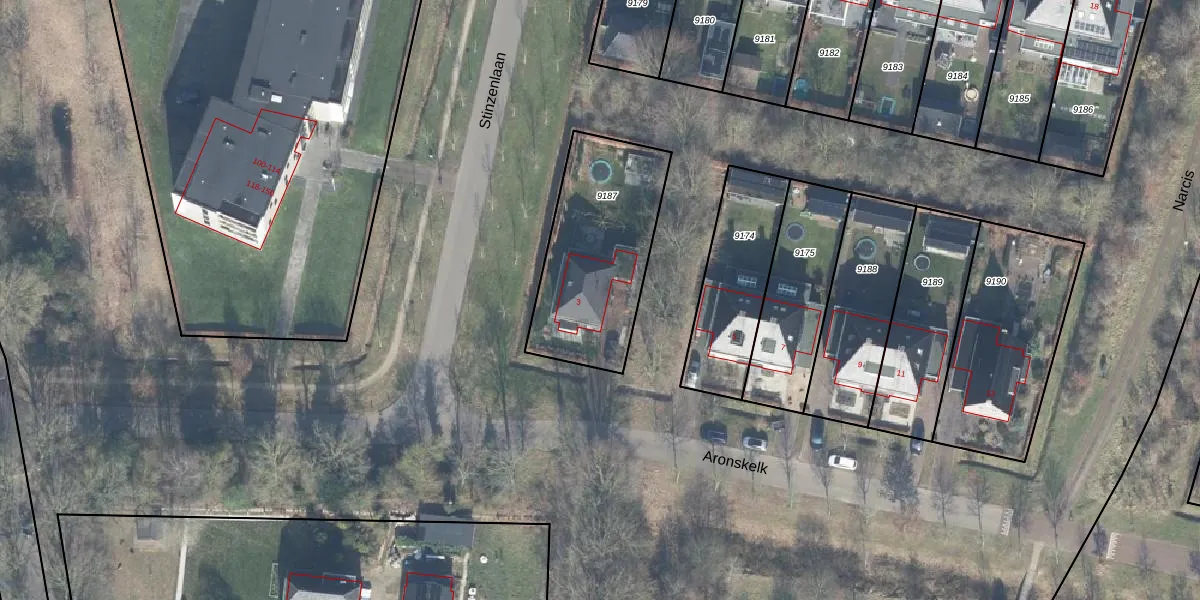 Gebruik de zoekbalk of klik op een perceel voor informatie over de adressen binnen dit perceel.