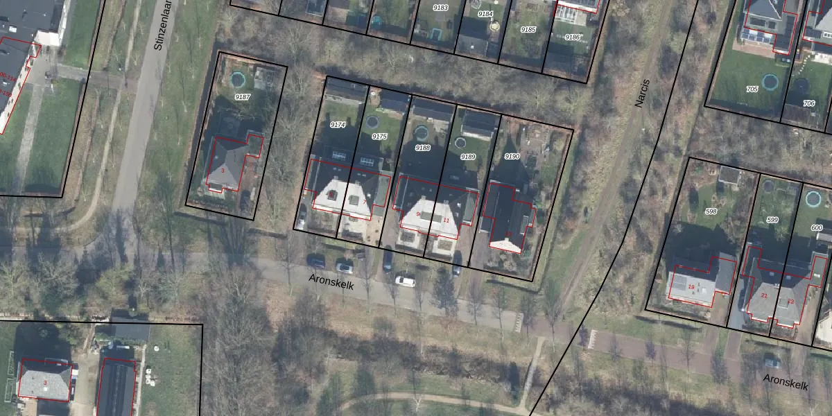Gebruik de zoekbalk of klik op een perceel voor informatie over de adressen binnen dit perceel.