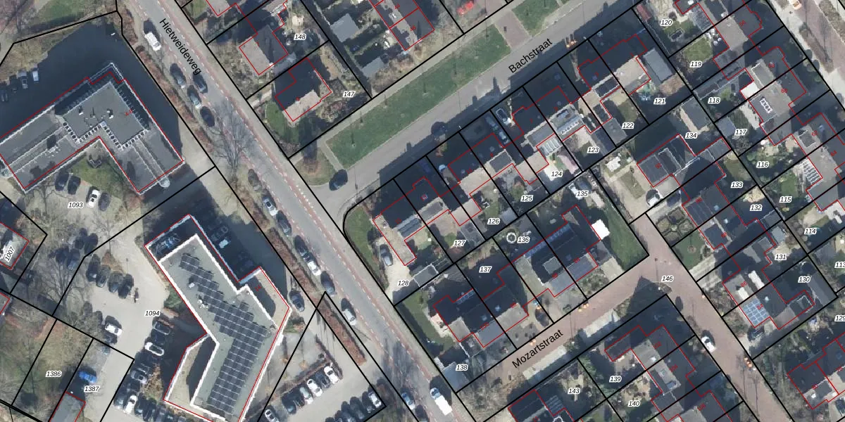 Het perceel waarop Bachstraat 13 staat heeft een oppervlakte van 238 m². Dit is een middelgroot perceel. De perceeloppervlakte wordt geregistreerd door het Kadaster. Gedetailleerde informatie over de maten van dit perceel kunt u vinden in het rapport Kadastrale kaart met maatvoering van Bachstraat 13.