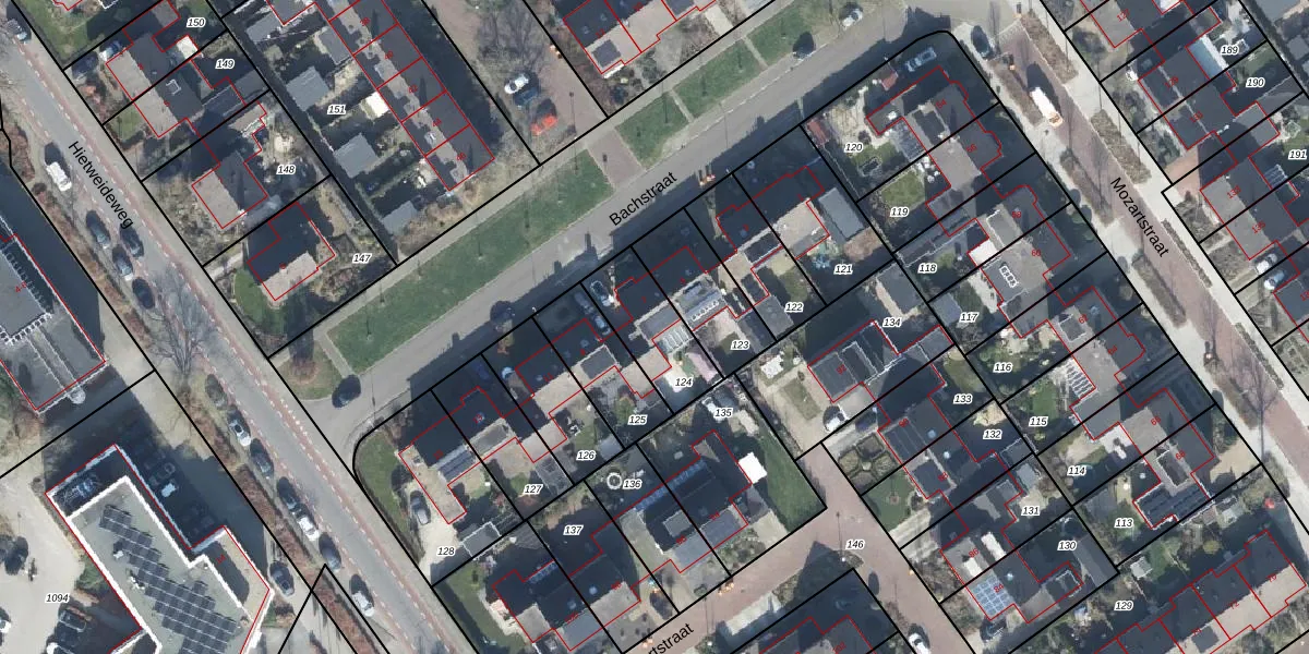 Gebruik de zoekbalk of klik op een perceel voor informatie over de adressen binnen dit perceel.
