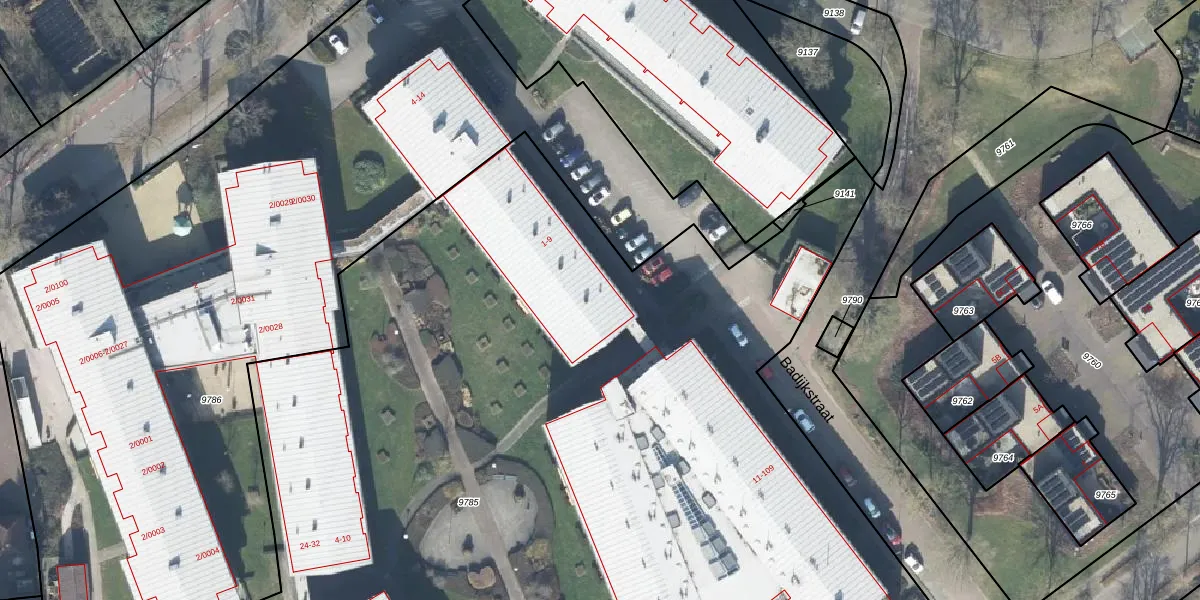 Badijkstraat 1 is gelegen op kadastraal perceel TLO00B9785. Deze kadastrale aanduiding is uniek en wordt gebruikt door het Kadaster om eigendomsrechten en andere zakelijke rechten vast te leggen. Het perceel maakt onderdeel uit van de kadastrale gemeente Twello.