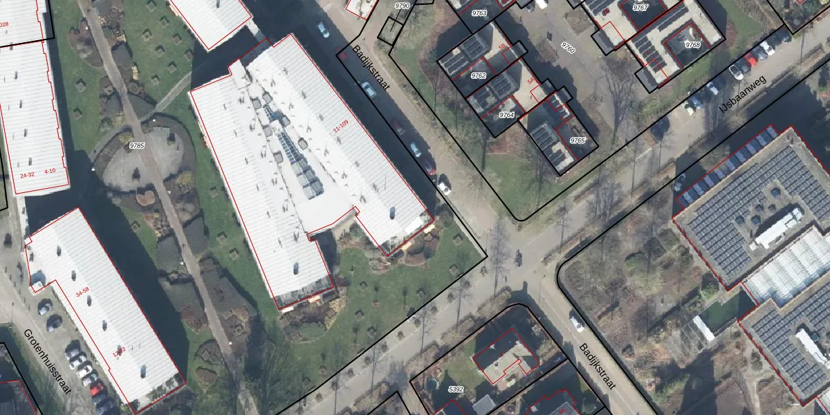 Het perceel waarop Badijkstraat 23 staat heeft een oppervlakte van 1,2 ha. Dit is een zeer groot perceel. De perceeloppervlakte wordt geregistreerd door het Kadaster. Gedetailleerde informatie over de maten van dit perceel kunt u vinden in het rapport Kadastrale kaart met maatvoering van Badijkstraat 23.