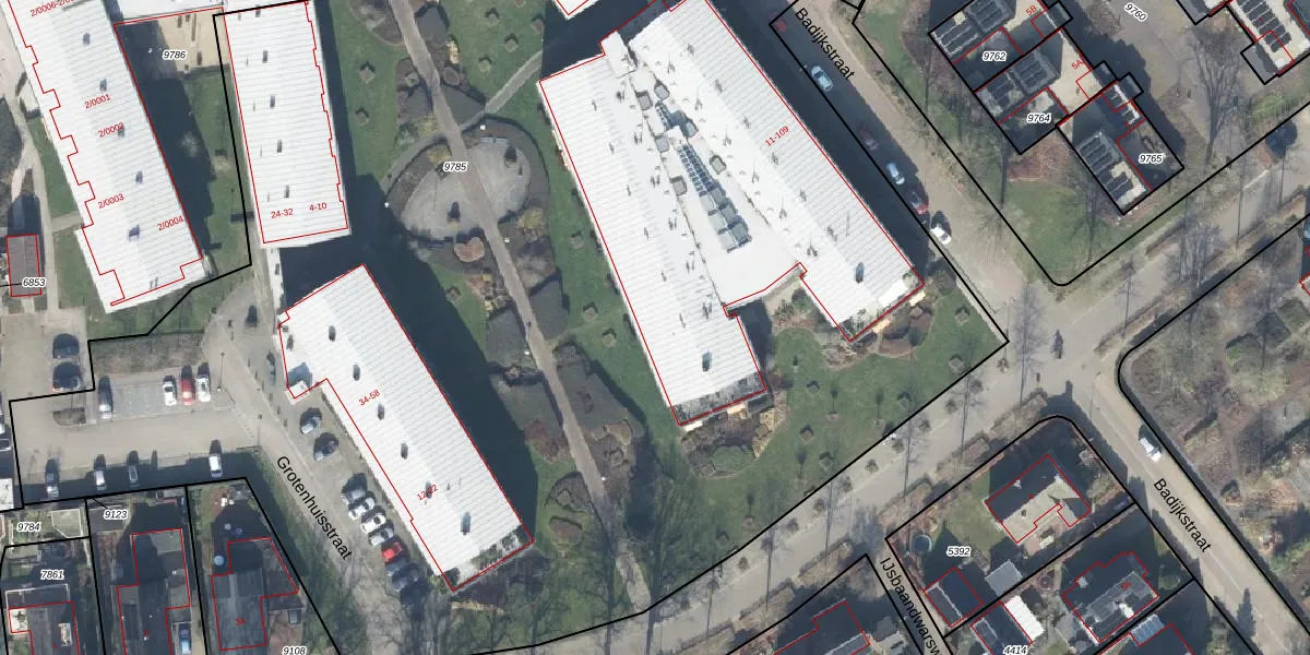 Het perceel waarop Badijkstraat 29 staat heeft een oppervlakte van 1,2 ha. Dit is een zeer groot perceel. De perceeloppervlakte wordt geregistreerd door het Kadaster. Gedetailleerde informatie over de maten van dit perceel kunt u vinden in het rapport Kadastrale kaart met maatvoering van Badijkstraat 29.