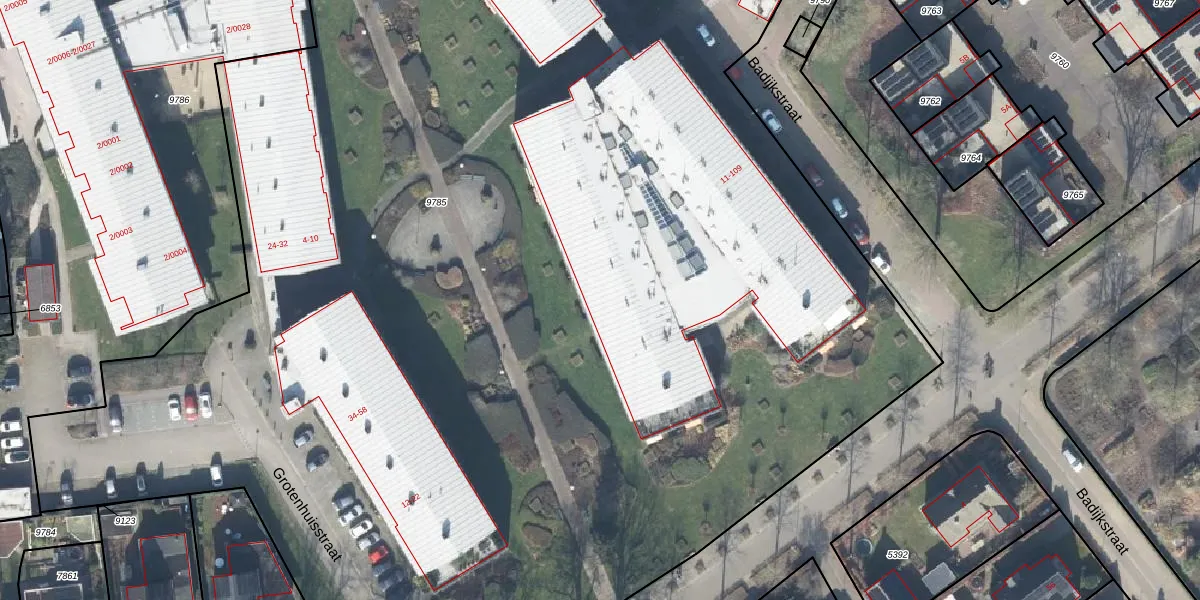 Het perceel waarop Badijkstraat 31 staat heeft een oppervlakte van 1,2 ha. Dit is een zeer groot perceel. De perceeloppervlakte wordt geregistreerd door het Kadaster. Gedetailleerde informatie over de maten van dit perceel kunt u vinden in het rapport Kadastrale kaart met maatvoering van Badijkstraat 31.