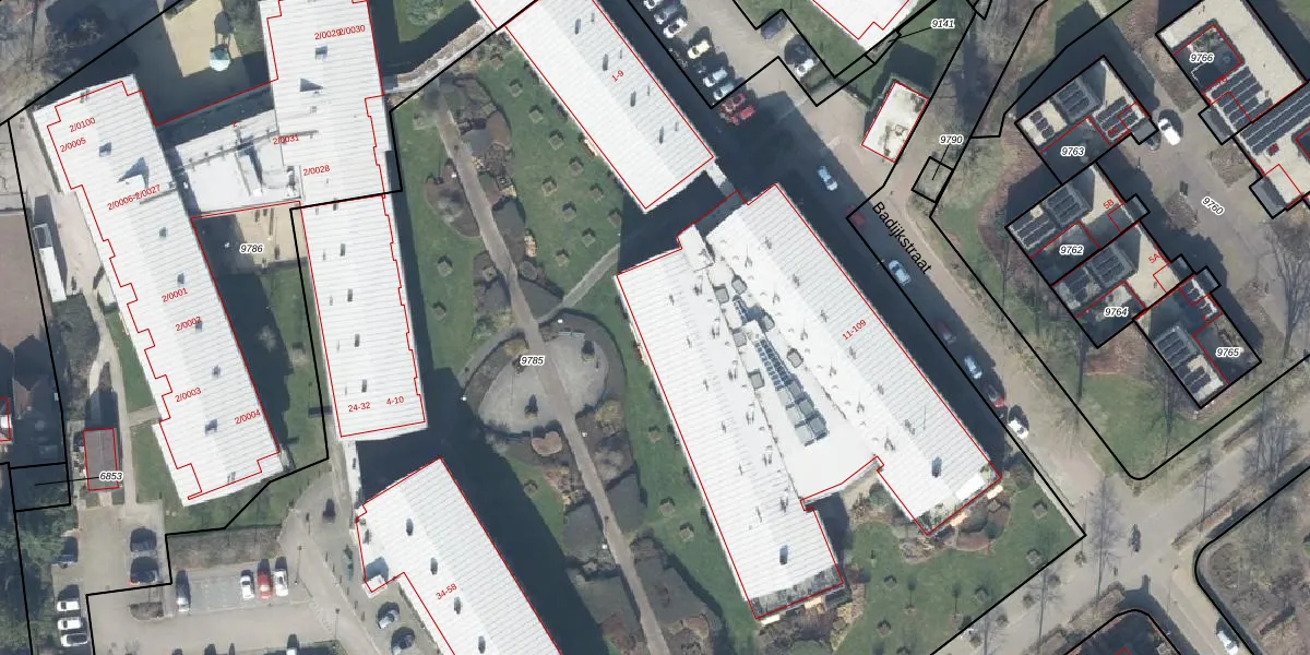 Het perceel waarop Badijkstraat 37 staat heeft een oppervlakte van 1,2 ha. Dit is een zeer groot perceel. De perceeloppervlakte wordt geregistreerd door het Kadaster. Gedetailleerde informatie over de maten van dit perceel kunt u vinden in het rapport Kadastrale kaart met maatvoering van Badijkstraat 37.