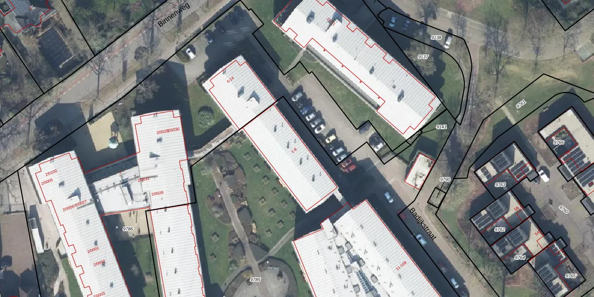 Het perceel waarop Badijkstraat 5 staat heeft een oppervlakte van 1,2 ha. Dit is een zeer groot perceel. De perceeloppervlakte wordt geregistreerd door het Kadaster. Gedetailleerde informatie over de maten van dit perceel kunt u vinden in het rapport Kadastrale kaart met maatvoering van Badijkstraat 5.