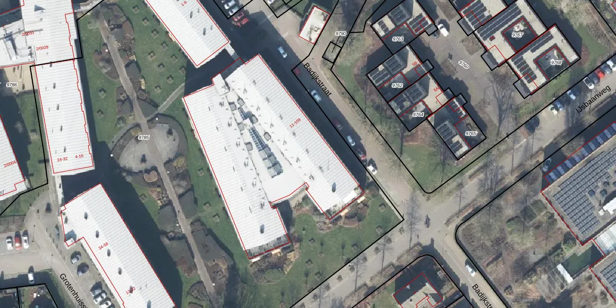 Het perceel waarop Badijkstraat 59 staat heeft een oppervlakte van 1,2 ha. Dit is een zeer groot perceel. De perceeloppervlakte wordt geregistreerd door het Kadaster. Gedetailleerde informatie over de maten van dit perceel kunt u vinden in het rapport Kadastrale kaart met maatvoering van Badijkstraat 59.