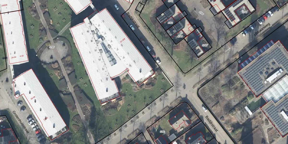 Het perceel waarop Badijkstraat 63 staat heeft een oppervlakte van 1,2 ha. Dit is een zeer groot perceel. De perceeloppervlakte wordt geregistreerd door het Kadaster. Gedetailleerde informatie over de maten van dit perceel kunt u vinden in het rapport Kadastrale kaart met maatvoering van Badijkstraat 63.