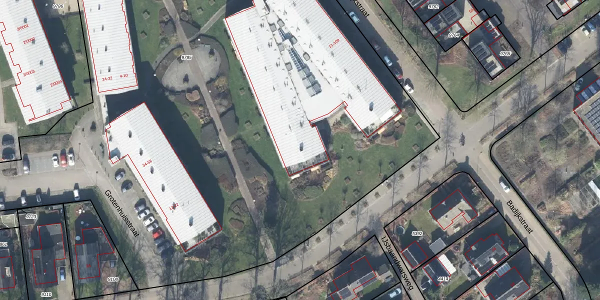 Het perceel waarop Badijkstraat 69 staat heeft een oppervlakte van 1,2 ha. Dit is een zeer groot perceel. De perceeloppervlakte wordt geregistreerd door het Kadaster. Gedetailleerde informatie over de maten van dit perceel kunt u vinden in het rapport Kadastrale kaart met maatvoering van Badijkstraat 69.