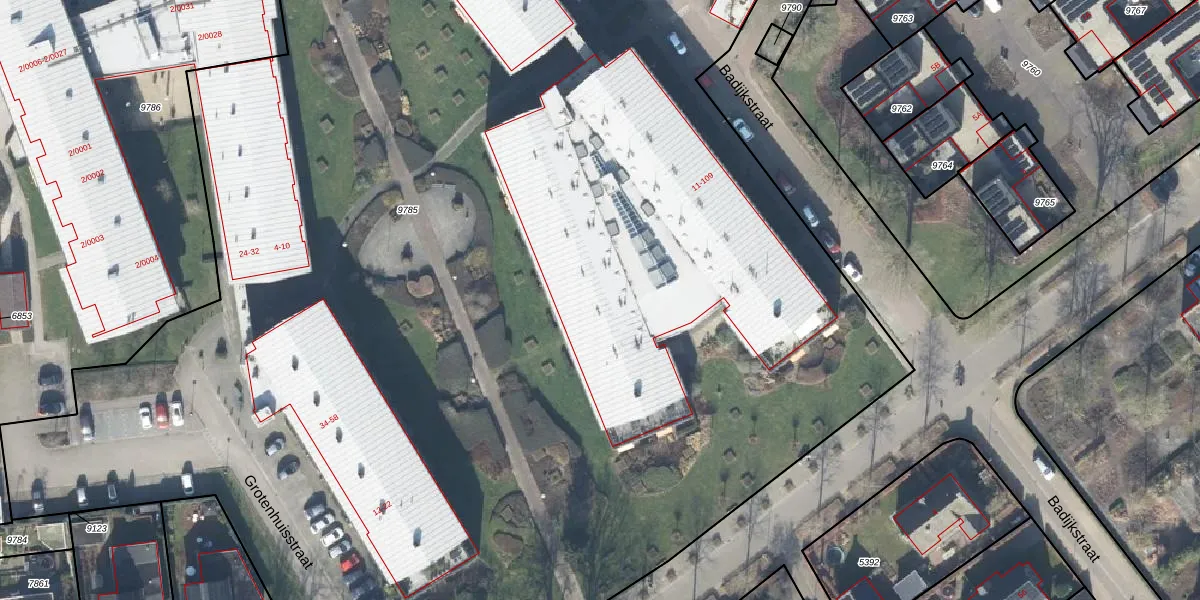 Het perceel waarop Badijkstraat 73 staat heeft een oppervlakte van 1,2 ha. Dit is een zeer groot perceel. De perceeloppervlakte wordt geregistreerd door het Kadaster. Gedetailleerde informatie over de maten van dit perceel kunt u vinden in het rapport Kadastrale kaart met maatvoering van Badijkstraat 73.