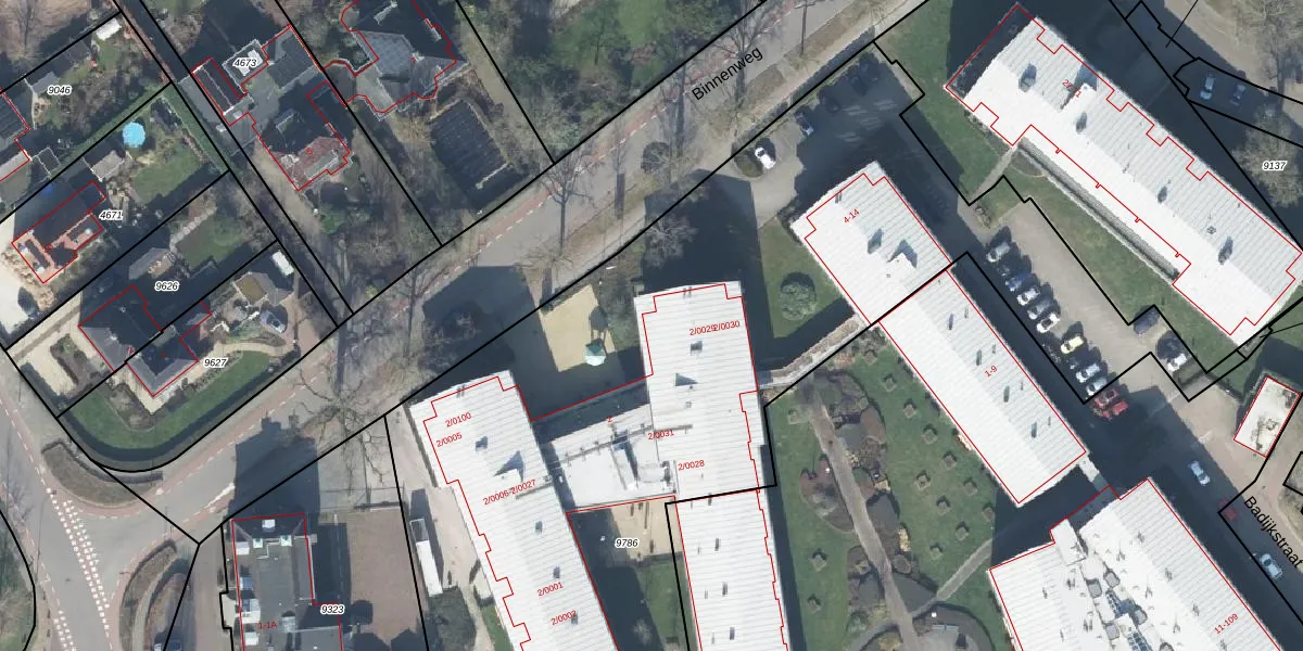 Binnenweg 2-0021 is gelegen op kadastraal perceel TLO00B9786. Deze kadastrale aanduiding is uniek en wordt gebruikt door het Kadaster om eigendomsrechten en andere zakelijke rechten vast te leggen. Het perceel maakt onderdeel uit van de kadastrale gemeente Twello.