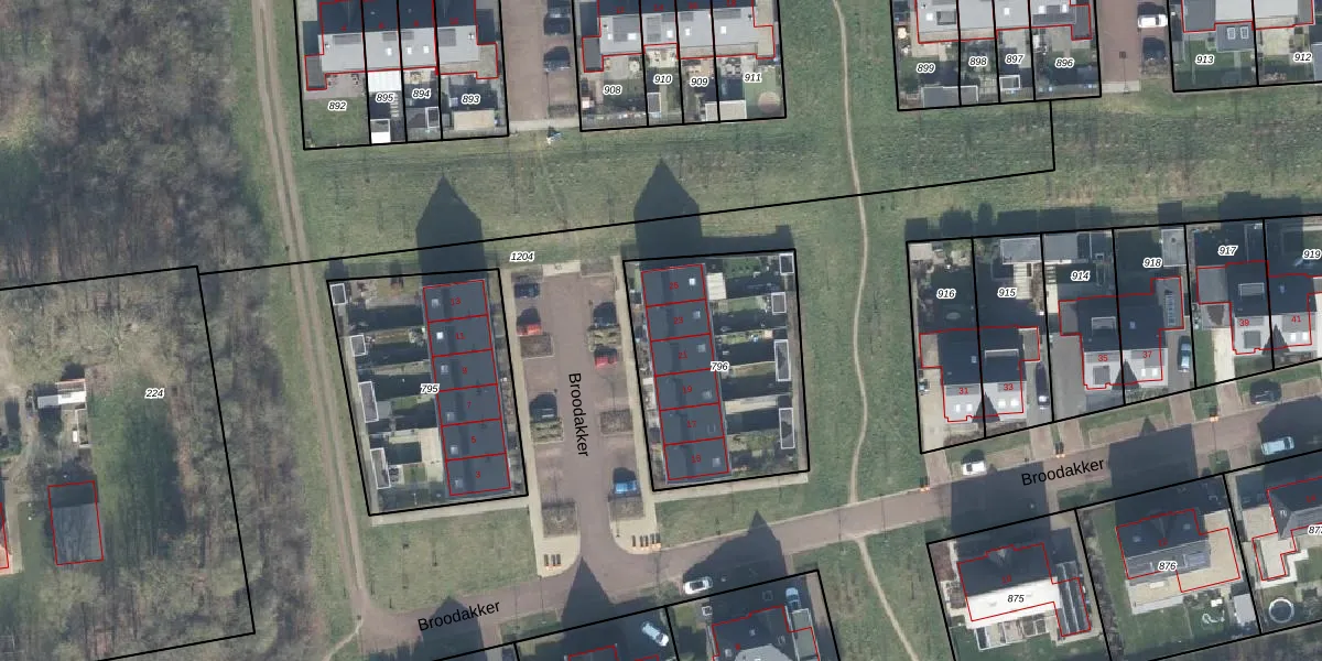 Het perceel waarop Broodakker 23 staat heeft een oppervlakte van 853 m². Dit is een groot perceel. De perceeloppervlakte wordt geregistreerd door het Kadaster. Gedetailleerde informatie over de maten van dit perceel kunt u vinden in het rapport Kadastrale kaart met maatvoering van Broodakker 23.