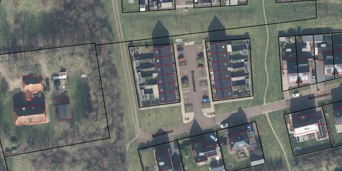 Het perceel waarop Broodakker 5 staat heeft een oppervlakte van 881 m². Dit is een groot perceel. De perceeloppervlakte wordt geregistreerd door het Kadaster. Gedetailleerde informatie over de maten van dit perceel kunt u vinden in het rapport Kadastrale kaart met maatvoering van Broodakker 5.