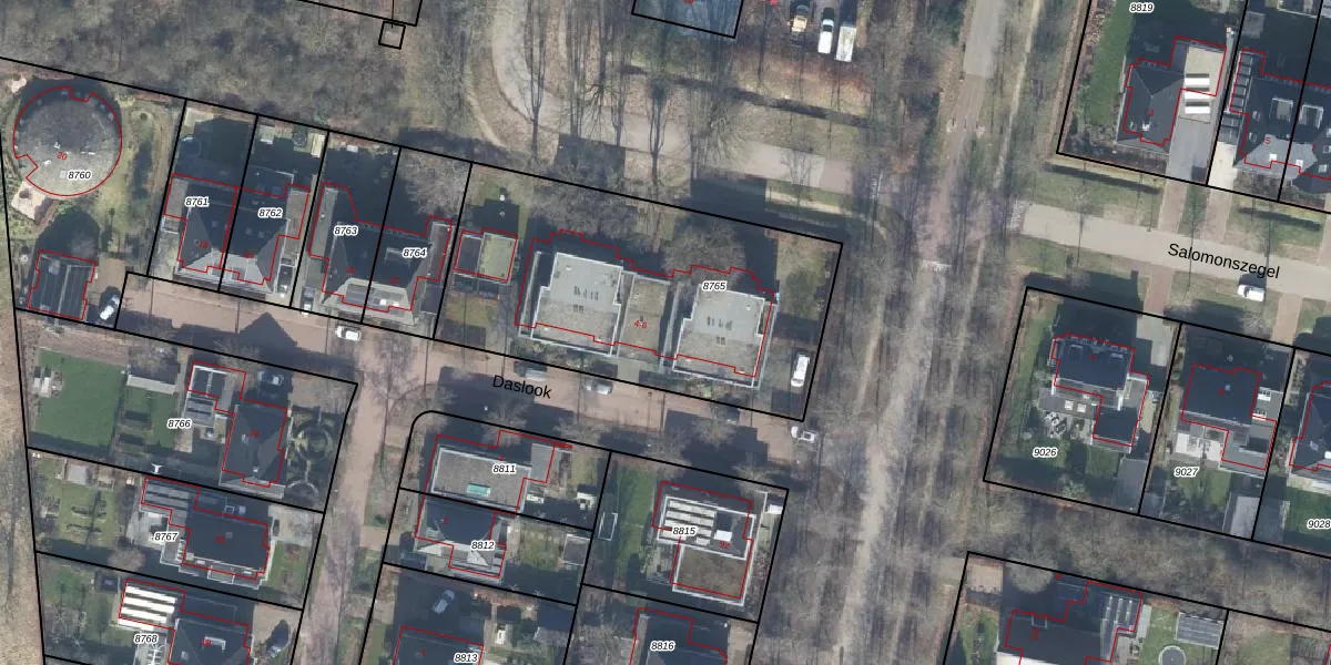 Het perceel waarop Daslook 4 staat heeft een oppervlakte van 1556 m². Dit is een zeer groot perceel. De perceeloppervlakte wordt geregistreerd door het Kadaster. Gedetailleerde informatie over de maten van dit perceel kunt u vinden in het rapport Kadastrale kaart met maatvoering van Daslook 4.