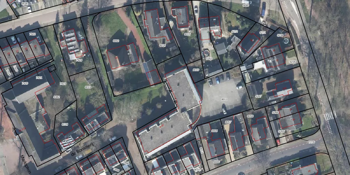 de Bommerij 10 is gelegen op kadastraal perceel TLO00B8013. Deze kadastrale aanduiding is uniek en wordt gebruikt door het Kadaster om eigendomsrechten en andere zakelijke rechten vast te leggen. Het perceel maakt onderdeel uit van de kadastrale gemeente Twello.