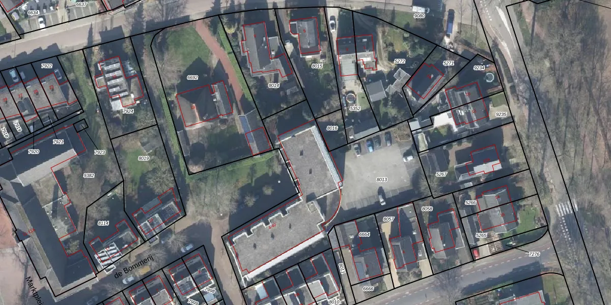 Het perceel waarop de Bommerij 24 staat heeft een oppervlakte van 1870 m². Dit is een zeer groot perceel. De perceeloppervlakte wordt geregistreerd door het Kadaster. Gedetailleerde informatie over de maten van dit perceel kunt u vinden in het rapport Kadastrale kaart met maatvoering van de Bommerij 24.