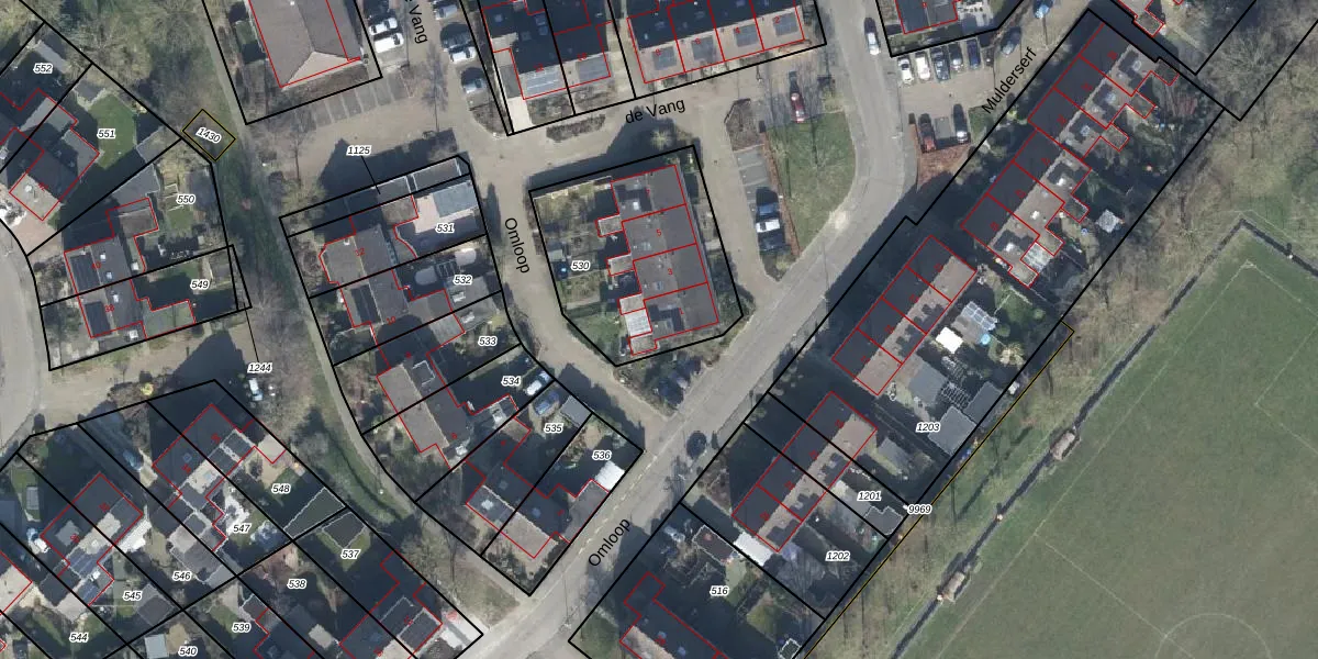Het perceel waarop de Vang 1 staat heeft een oppervlakte van 728 m². Dit is een groot perceel. De perceeloppervlakte wordt geregistreerd door het Kadaster. Gedetailleerde informatie over de maten van dit perceel kunt u vinden in het rapport Kadastrale kaart met maatvoering van de Vang 1.