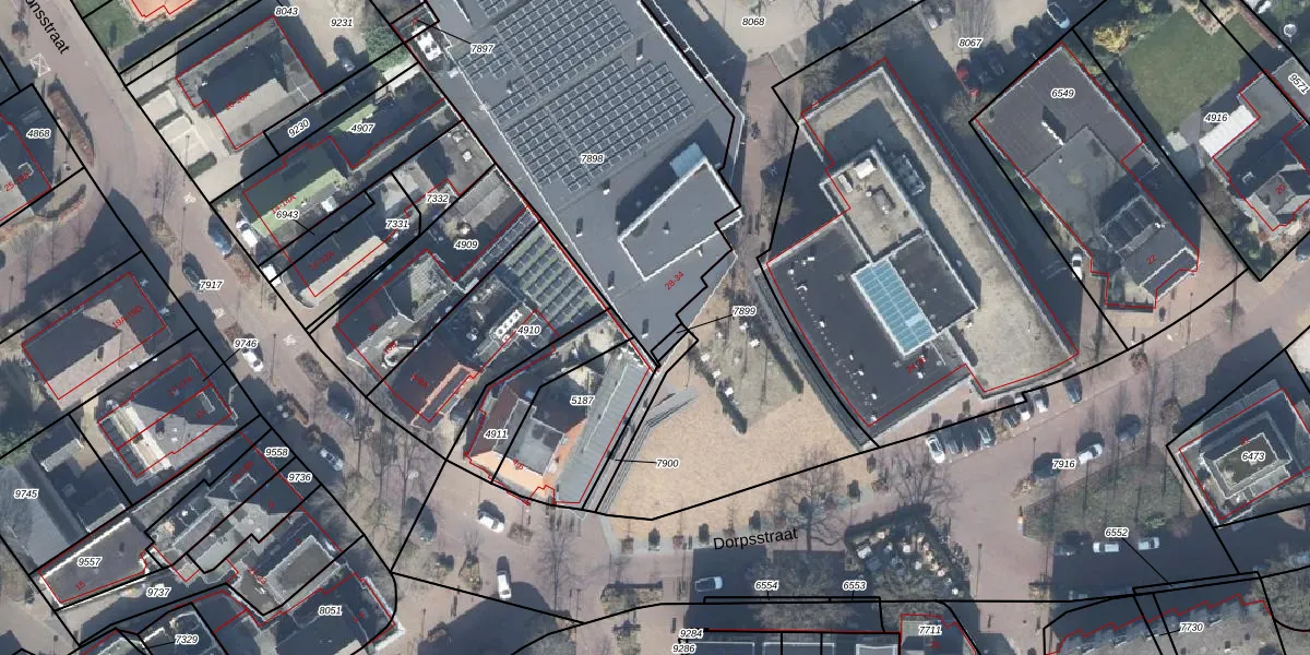 Het perceel waarop Dorpsstraat 34 staat heeft een oppervlakte van 1865 m². Dit is een zeer groot perceel. De perceeloppervlakte wordt geregistreerd door het Kadaster. Gedetailleerde informatie over de maten van dit perceel kunt u vinden in het rapport Kadastrale kaart met maatvoering van Dorpsstraat 34.