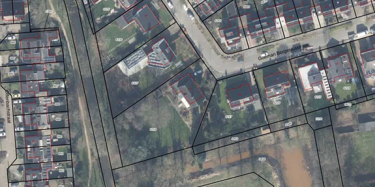 Goeman Borgesiusstraat 21 is gelegen op kadastraal perceel TLO00B6218. Deze kadastrale aanduiding is uniek en wordt gebruikt door het Kadaster om eigendomsrechten en andere zakelijke rechten vast te leggen. Het perceel maakt onderdeel uit van de kadastrale gemeente Twello.