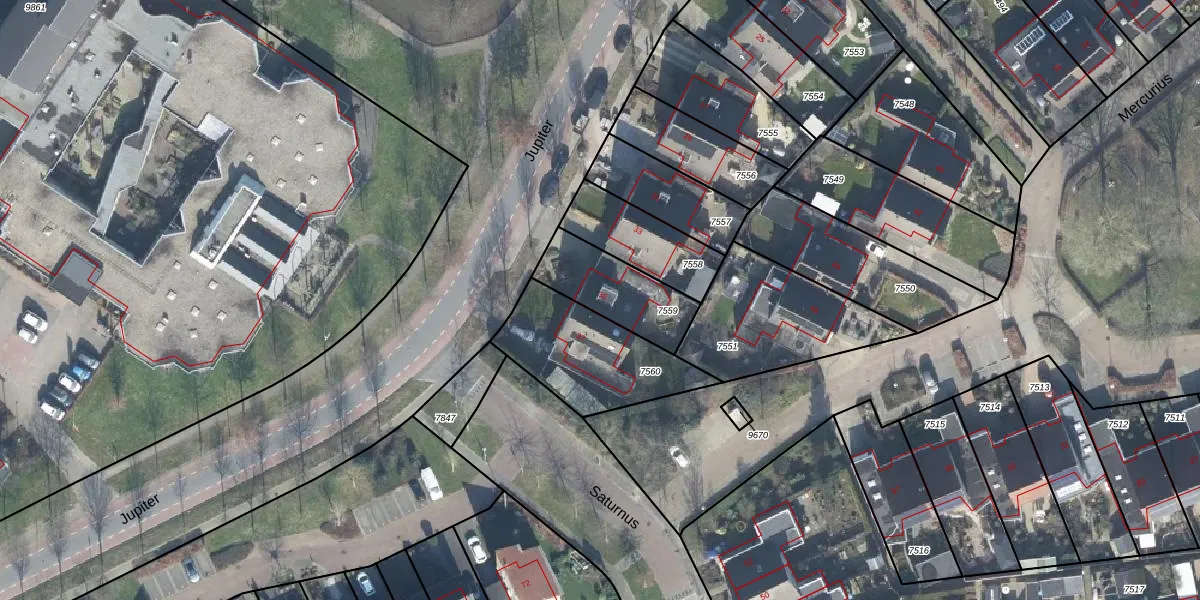Het perceel waarop Jupiter 35 staat heeft een oppervlakte van 262 m². Dit is een middelgroot perceel. De perceeloppervlakte wordt geregistreerd door het Kadaster. Gedetailleerde informatie over de maten van dit perceel kunt u vinden in het rapport Kadastrale kaart met maatvoering van Jupiter 35.