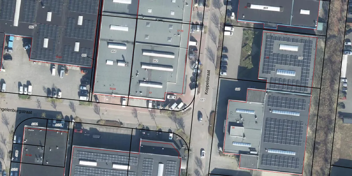 Het perceel waarop Koppelstraat 17 staat heeft een oppervlakte van 1845 m². Dit is een zeer groot perceel. De perceeloppervlakte wordt geregistreerd door het Kadaster. Gedetailleerde informatie over de maten van dit perceel kunt u vinden in het rapport Kadastrale kaart met maatvoering van Koppelstraat 17.