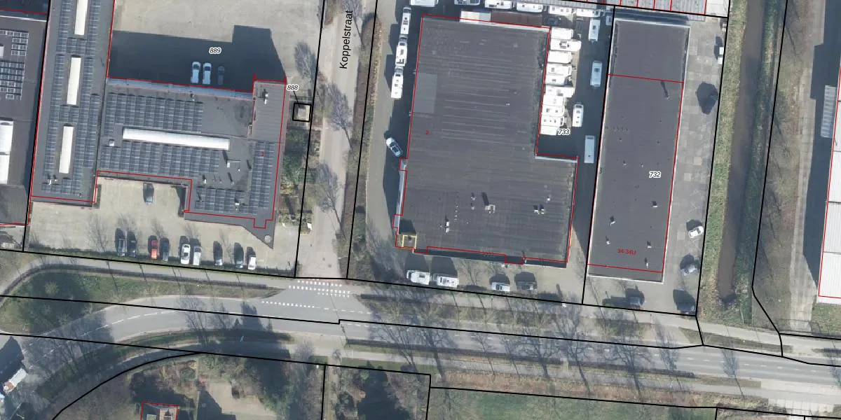 Het perceel waarop Koppelstraat 2-A staat heeft een oppervlakte van 4060 m². Dit is een zeer groot perceel. De perceeloppervlakte wordt geregistreerd door het Kadaster. Gedetailleerde informatie over de maten van dit perceel kunt u vinden in het rapport Kadastrale kaart met maatvoering van Koppelstraat 2-A.