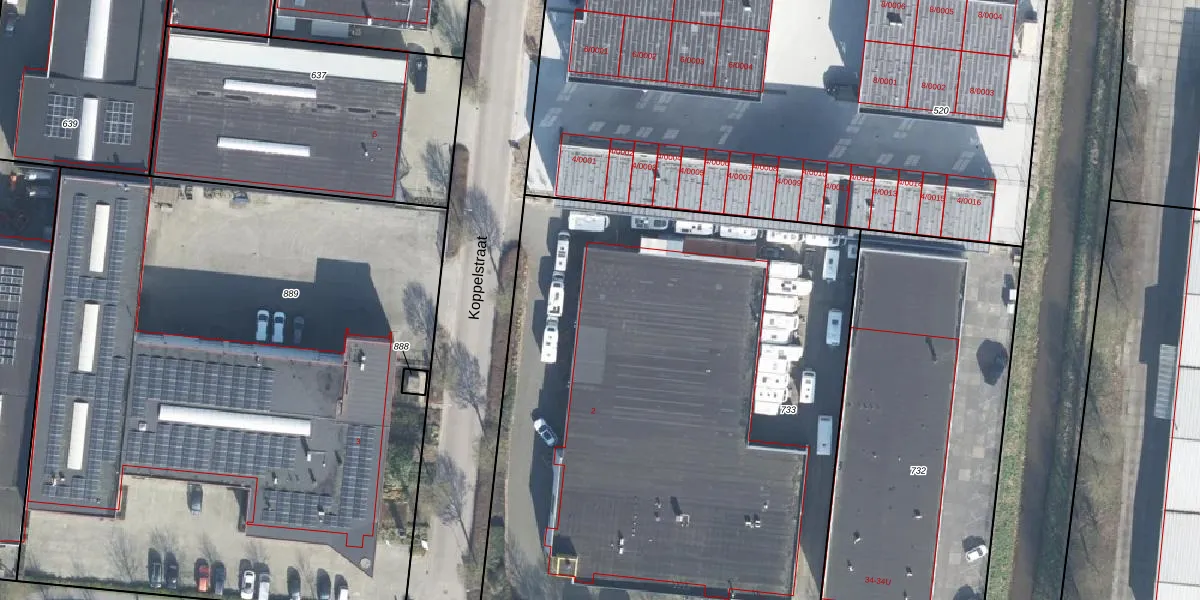Het perceel waarop Koppelstraat 2-G staat heeft een oppervlakte van 4060 m². Dit is een zeer groot perceel. De perceeloppervlakte wordt geregistreerd door het Kadaster. Gedetailleerde informatie over de maten van dit perceel kunt u vinden in het rapport Kadastrale kaart met maatvoering van Koppelstraat 2-G.