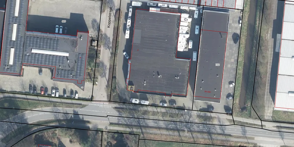 Het perceel waarop Koppelstraat 2-H staat heeft een oppervlakte van 4060 m². Dit is een zeer groot perceel. De perceeloppervlakte wordt geregistreerd door het Kadaster. Gedetailleerde informatie over de maten van dit perceel kunt u vinden in het rapport Kadastrale kaart met maatvoering van Koppelstraat 2-H.