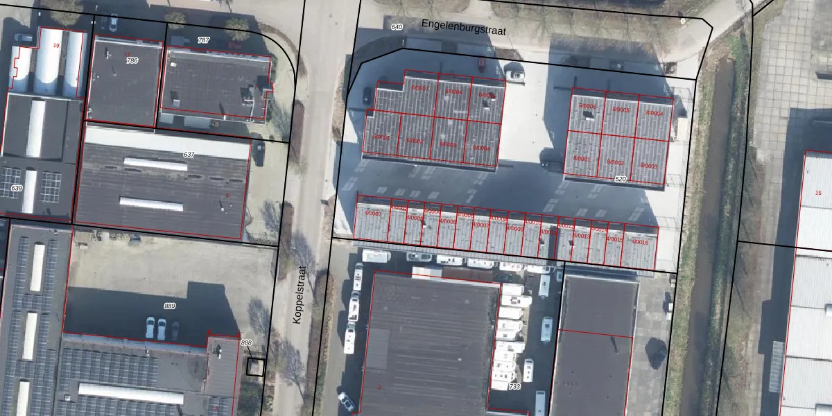 Het perceel waarop Koppelstraat 4-0003 staat heeft een oppervlakte van 3850 m². Dit is een zeer groot perceel. De perceeloppervlakte wordt geregistreerd door het Kadaster. Gedetailleerde informatie over de maten van dit perceel kunt u vinden in het rapport Kadastrale kaart met maatvoering van Koppelstraat 4-0003.