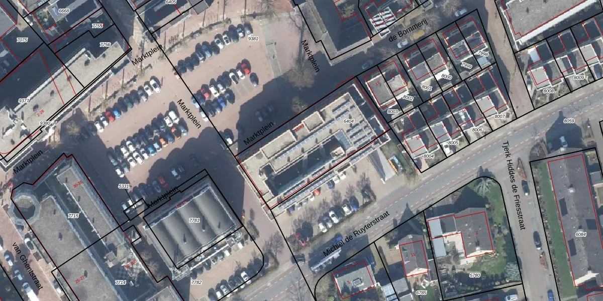 Het perceel waarop Marktplein 21 staat heeft een oppervlakte van 1007 m². Dit is een zeer groot perceel. De perceeloppervlakte wordt geregistreerd door het Kadaster. Gedetailleerde informatie over de maten van dit perceel kunt u vinden in het rapport Kadastrale kaart met maatvoering van Marktplein 21.