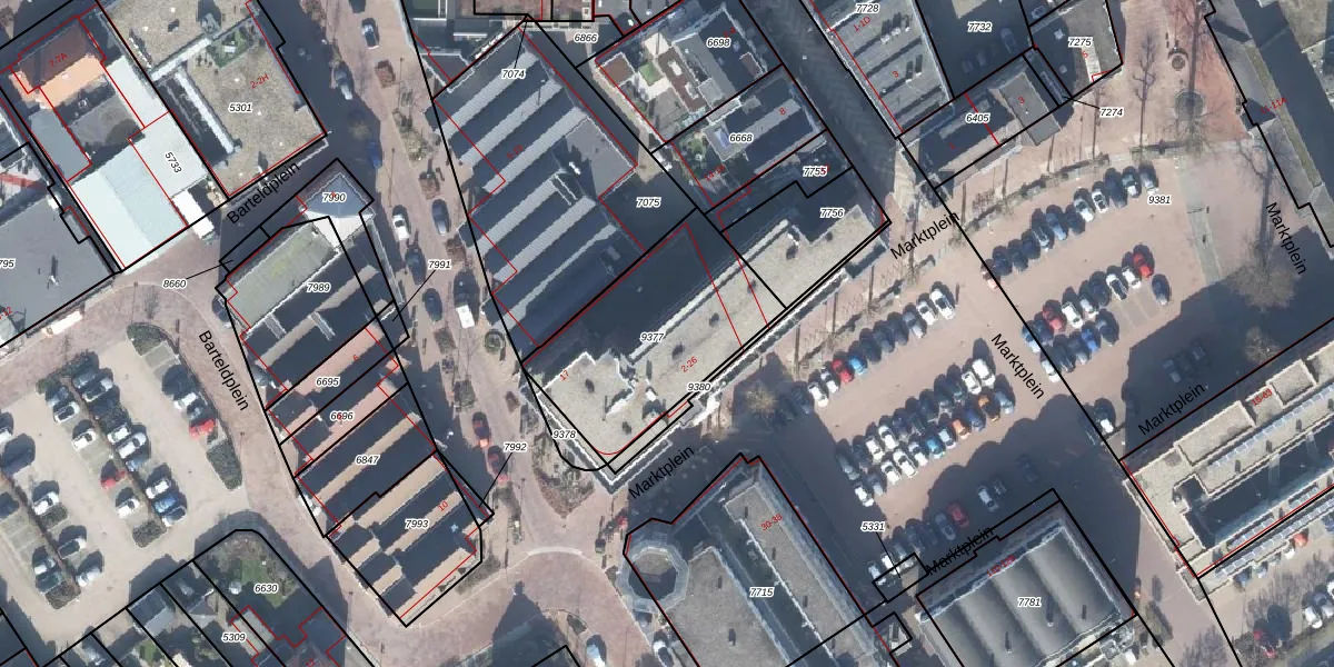Het perceel waarop Marktplein 22-C staat heeft een oppervlakte van 712 m². Dit is een groot perceel. De perceeloppervlakte wordt geregistreerd door het Kadaster. Gedetailleerde informatie over de maten van dit perceel kunt u vinden in het rapport Kadastrale kaart met maatvoering van Marktplein 22-C.