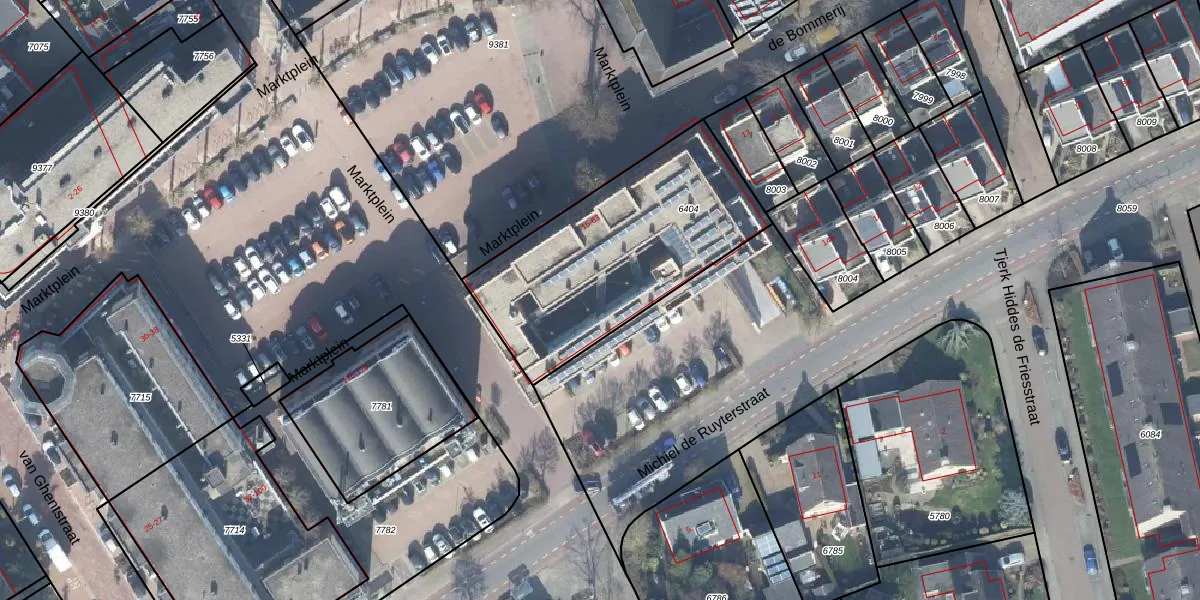 Het perceel waarop Marktplein 49 staat heeft een oppervlakte van 1007 m². Dit is een zeer groot perceel. De perceeloppervlakte wordt geregistreerd door het Kadaster. Gedetailleerde informatie over de maten van dit perceel kunt u vinden in het rapport Kadastrale kaart met maatvoering van Marktplein 49.