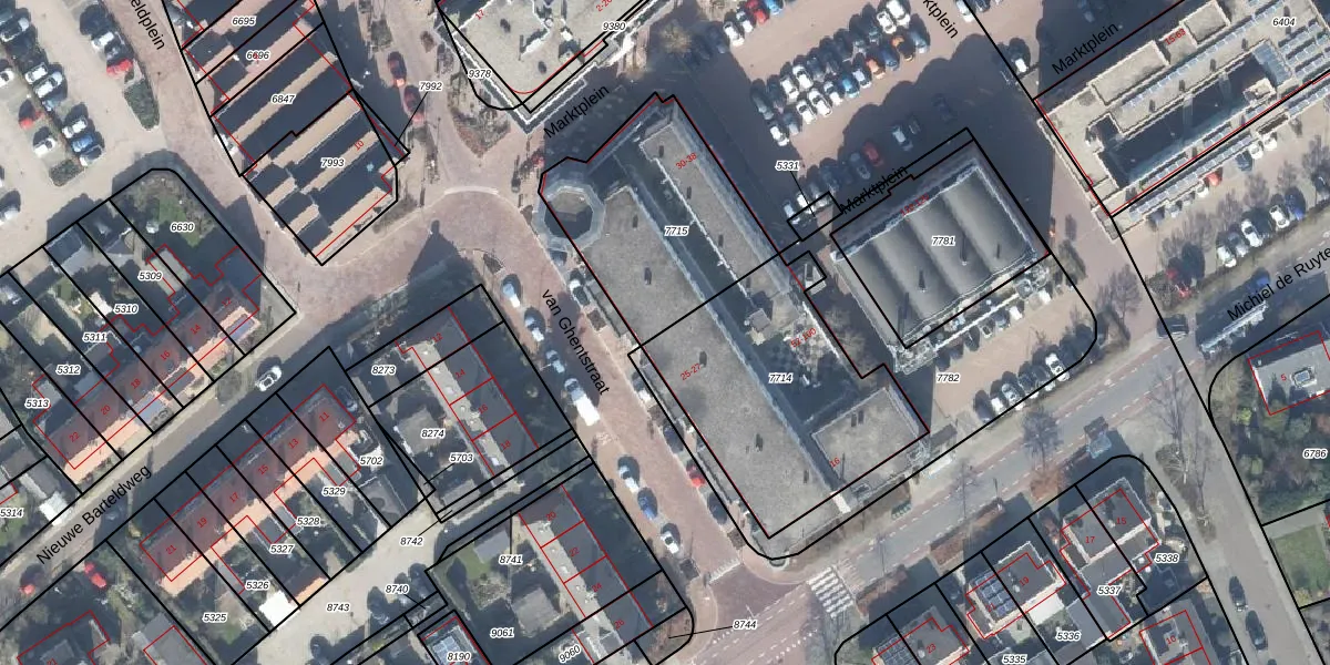 Het perceel waarop Marktplein 58 staat heeft een oppervlakte van 935 m². Dit is een groot perceel. De perceeloppervlakte wordt geregistreerd door het Kadaster. Gedetailleerde informatie over de maten van dit perceel kunt u vinden in het rapport Kadastrale kaart met maatvoering van Marktplein 58.