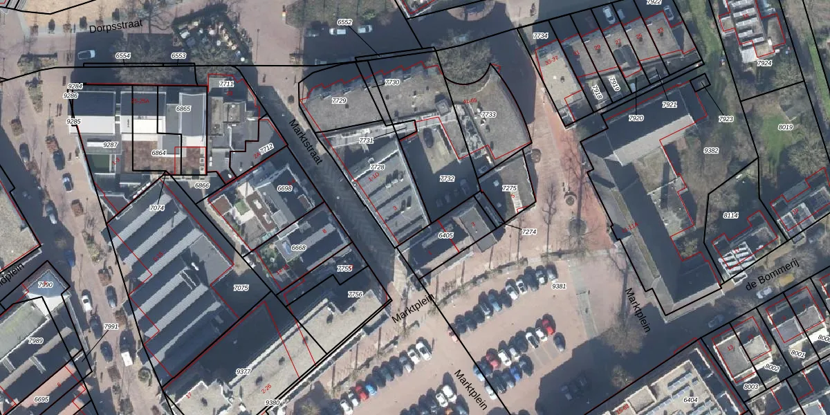 Het perceel waarop Marktstraat 1-C staat heeft een oppervlakte van 417 m². Dit is een groot perceel. De perceeloppervlakte wordt geregistreerd door het Kadaster. Gedetailleerde informatie over de maten van dit perceel kunt u vinden in het rapport Kadastrale kaart met maatvoering van Marktstraat 1-C.