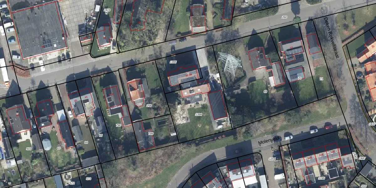 Het perceel waarop Molendwarsstraat 37 staat heeft een oppervlakte van 1044 m². Dit is een zeer groot perceel. De perceeloppervlakte wordt geregistreerd door het Kadaster. Gedetailleerde informatie over de maten van dit perceel kunt u vinden in het rapport Kadastrale kaart met maatvoering van Molendwarsstraat 37.