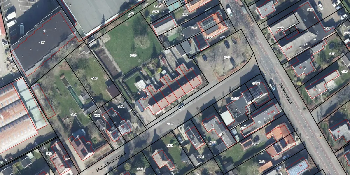 Het perceel waarop Molendwarsstraat 4 staat heeft een oppervlakte van 2249 m². Dit is een zeer groot perceel. De perceeloppervlakte wordt geregistreerd door het Kadaster. Gedetailleerde informatie over de maten van dit perceel kunt u vinden in het rapport Kadastrale kaart met maatvoering van Molendwarsstraat 4.