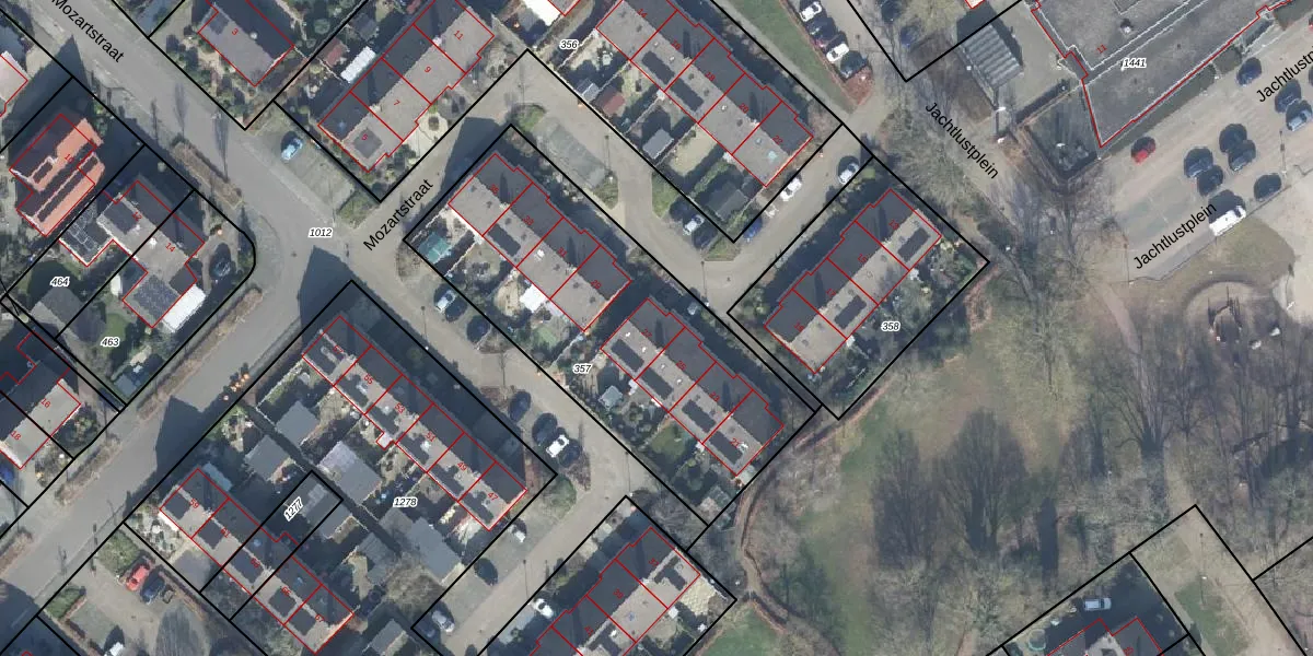 Het perceel waarop Mozartstraat 27 staat heeft een oppervlakte van 1505 m². Dit is een zeer groot perceel. De perceeloppervlakte wordt geregistreerd door het Kadaster. Gedetailleerde informatie over de maten van dit perceel kunt u vinden in het rapport Kadastrale kaart met maatvoering van Mozartstraat 27.