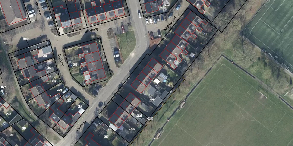 Het perceel waarop Omloop 13 staat heeft een oppervlakte van 2030 m². Dit is een zeer groot perceel. De perceeloppervlakte wordt geregistreerd door het Kadaster. Gedetailleerde informatie over de maten van dit perceel kunt u vinden in het rapport Kadastrale kaart met maatvoering van Omloop 13.