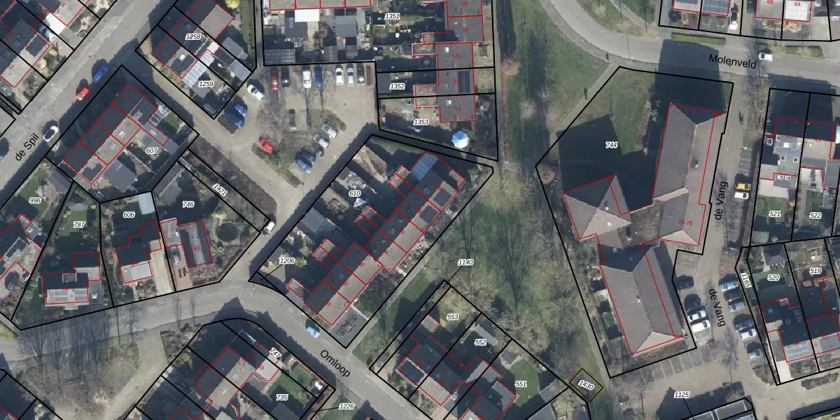 Het perceel waarop Omloop 50 staat heeft een oppervlakte van 1390 m². Dit is een zeer groot perceel. De perceeloppervlakte wordt geregistreerd door het Kadaster. Gedetailleerde informatie over de maten van dit perceel kunt u vinden in het rapport Kadastrale kaart met maatvoering van Omloop 50.